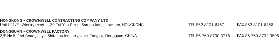 Crownwell 2/F No.5, 2nd Road jianye, Shitanpu industry zone, Tangxia, Dongguan, CHINA